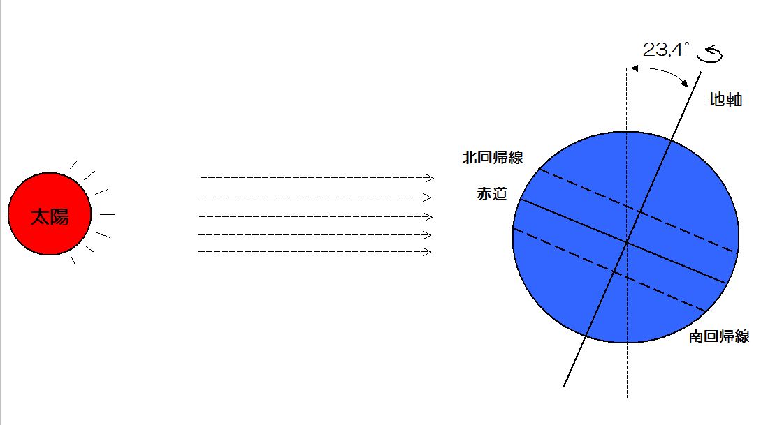地球は1日1回の自転をしながら1年かけて太陽の周りを公転しています、しかも地軸を23.4度傾けた状態で回っている事により春・夏・秋・冬の四季が生まれます。